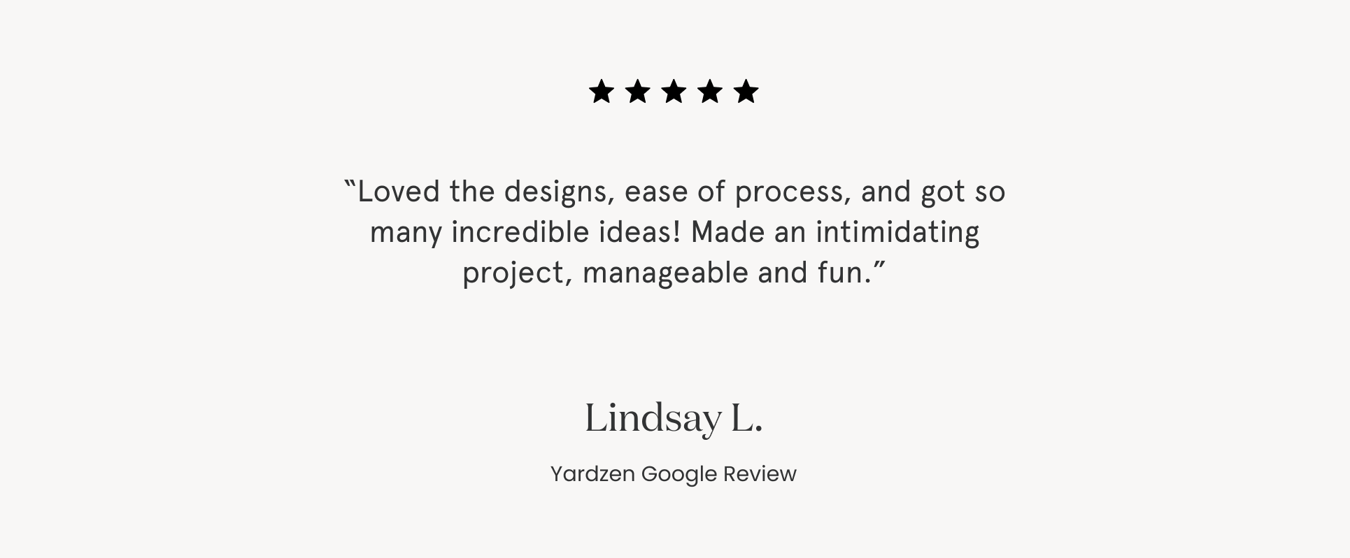 “Highly suggest Yardzen. The online process made everything super easy and efficient. Thank you to the entire Yardzen team.”